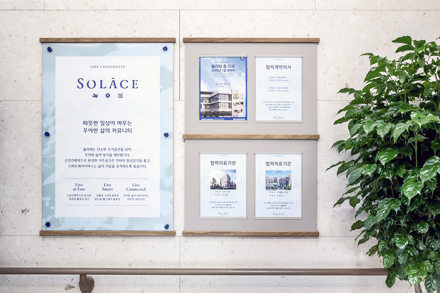 아뜰리에동가는 개발된 브랜드 자산을 활용하여 시니어 시설에 최적화된 웨이파인딩 디자인을 설계하였습니다.